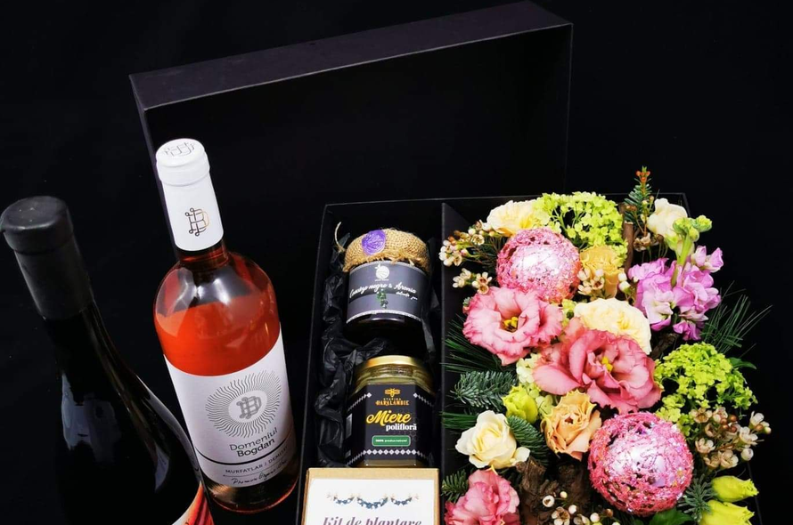 Oferim o gama variata de buchete si aranjamente de flori. Cu ocazia sarbatorilor venim in intampinarea clientilor cu o cutie cadou, care pe langa aranjamentul floral mai poate contine o sticla de vin, un borcan de dulceata de aronia, miere de albine sau un kit cu ajutorilmcaruiansa puteti planta propriul brad. Toate acestea din urma sunt achizitionate de la producatori locali.