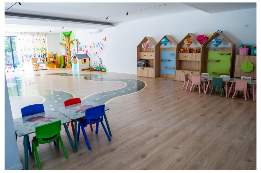 Dotări complete ale creșei: Săli de activități luminoase, complet mobilate și sigure pentru bebeluși și toddleri Mobilier ergonomic, adaptat vârstei (măsuțe joase, scăunele, pătuțuri, rafturi accesibile) Pătuțuri individuale cu saltele și lenjerie hipoalergenică Saltele de joacă, covoare antialergice și zone cu spumă moale pentru siguranță Leagăne și balansoare pentru bebeluși Jucării senzoriale, educative, moi și certificate pentru 0–3 ani Bibliotecă cu cărți de povești pentru copii mici și materiale de stimulare timpurie Spații pentru schimbat scutece, dotate cu mese de înfășat și lavoare Grupuri sanitare adaptate (inclusiv olițe și toalete mici pentru antrenamentul la oliță) Uși și colțuri protejate cu sisteme de siguranță pentru copii Bucătărie proprie complet echipată (inclusiv sterilizatoare, blendere, încălzitoare biberoane) Spațiu pentru servirea mesei, cu scaune de masă pentru copii mici Frigider separat pentru păstrarea laptelui matern sau formulei Vestiare pentru copii și personal, cu spații individuale de depozitare Cabinet medical / spațiu pentru prim ajutor Sistem de supraveghere video (interior și exterior) Sistem de acces securizat și interfon cu cameră Încălzire centrală și aer condiționat pentru confort termic permanent Curte exterioară amenajată cu gazon și spații de joacă sigure pentru copii mici Jucării de exterior adaptate vârstei (tobogane mici, căsuțe de joacă, balansoare de plastic) Foișor sau zonă umbrită pentru activități în aer liber Locuri de parcare pentru părinți și personal
