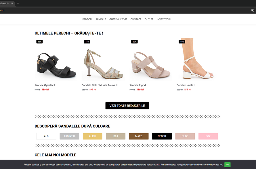 Fondată în 1992, compania noastră este unul dintre cele mai consacrate branduri de încălțăminte din România. Magazinul online funcționează de peste 15 ani și reunește atât colecțiile proprii de încălțăminte, cât și produse selectate de la alți producători. Cu o prezență puternică în social media și peste 1 milion de euro investiți în campanii publicitare în ultimii 9 ani