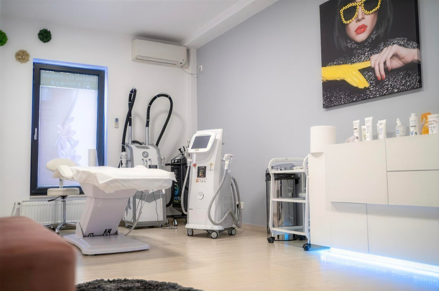 Aparat epilare - 3 lungimi de unda , de mare putere 3500w , 1800 ieșire în cap - Magnetiq - corporal ,tonifiere ( cel mai puternic din clasa sa) - Sculptor - corporal 3 in 1, slăbire ,tonifiere , aniticelulitic - Hidrații - cel mai nou aparat pt tratamente faciale -2 aparate de aer condiționat - monitorizare video - interfon video - bariera cu telecomanda - 2 paturi de salon ( unul dintre ele fiind cu 3 motoare) -Fotoliu, canapea , recepție ,etc