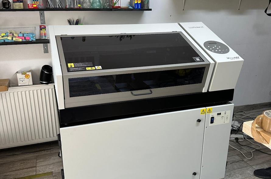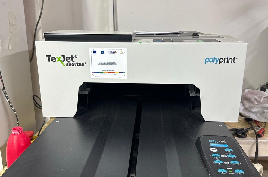 Dotări incluse în firmă: imprimantă Roland VG-3 (eco-solvent, 160 cm); imprimantă UV Roland LEF-2-200; cutter plotter Roland GS-24 (60 cm); imprimantă DTG PolyShortee 2 pentru textile; mașină de brodat Melco EMT 16x (profesională, multifuncțională); laptop HP de ultimă generație (Intel i7, 32 GB RAM, SSD 1 TB).
