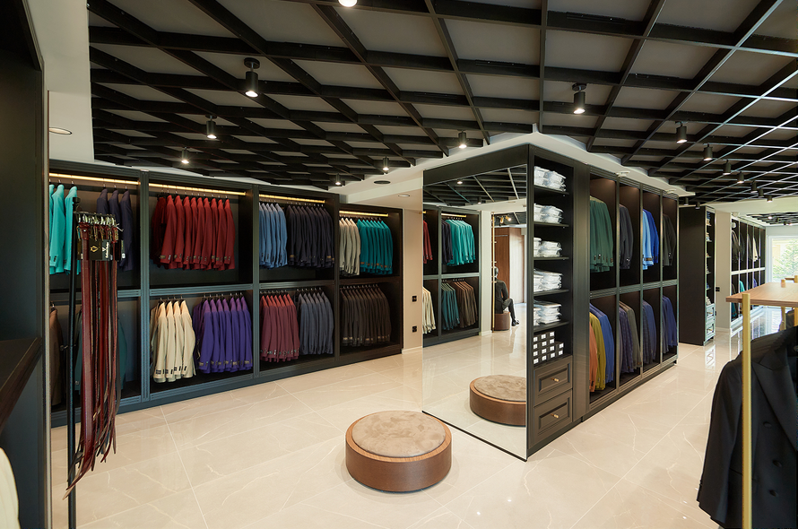 Mobilier Custom Made + mobilier Richmond, Eichholz Manechini profesionali damă+bărbați din aceeași gamă realizați la comandă Utilaje atelier de croitorie (masini de cusut, de brodat, statie de calcat profesionala,etc) Scanner corporal 3D pentru dimensiuni atipice Sisteme Desktop iMac, iPad, iPhone Ecran Touchscreen ultimă generație pentru configurare produse Custom Made