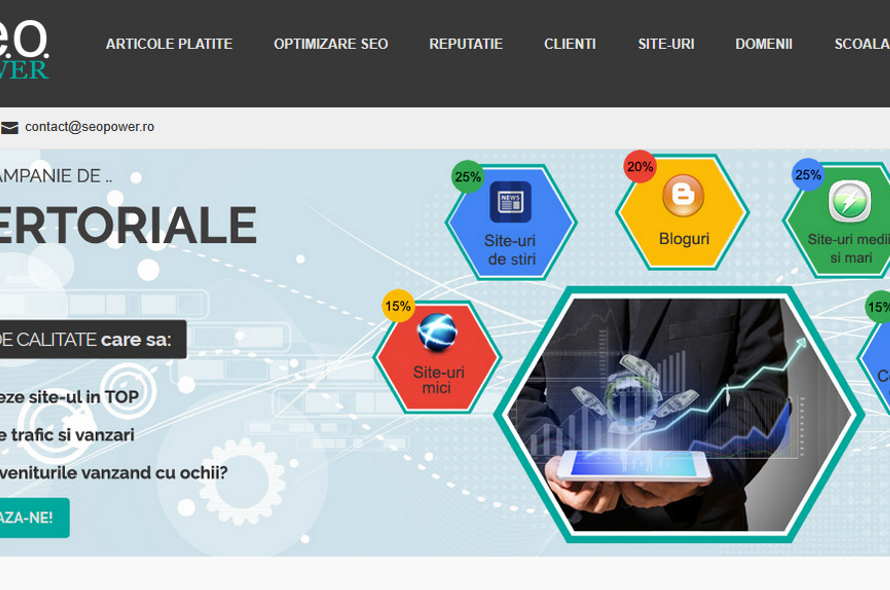 Vand afacere online SEO - site de prezentare (SeoPower.ro) plus 50 de site-uri de continut.